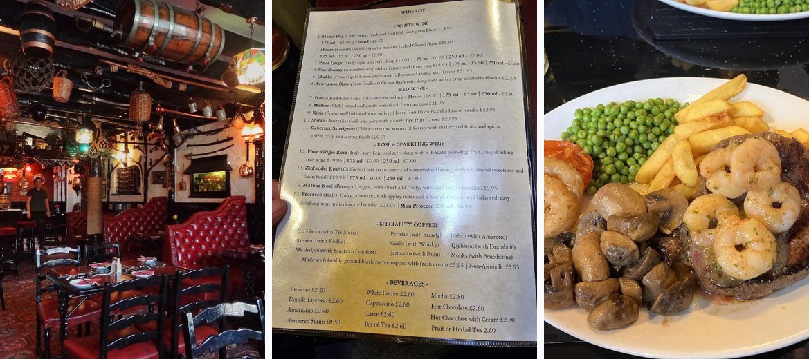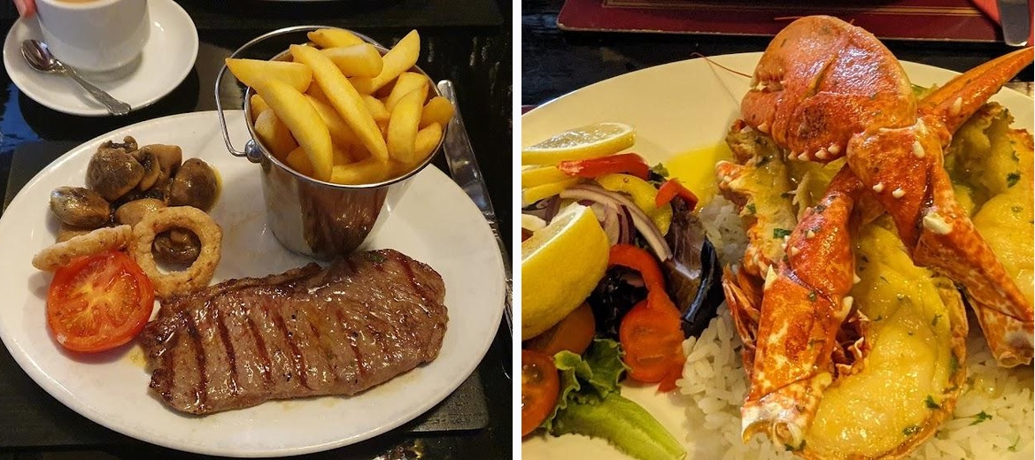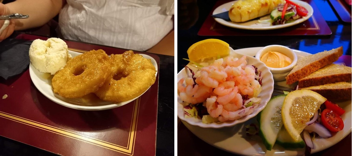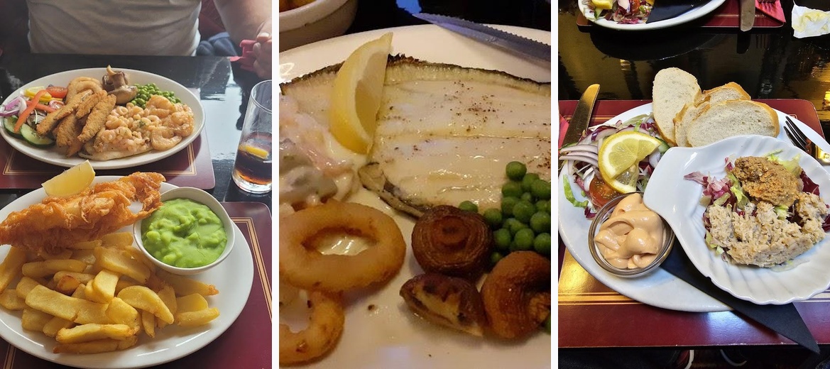 A really superb restaurant. We both had prawn cocktail for starters, my main was salmon supreme and the wife had smugglers plaice. For dessert we had pineapple fritters and sherry trifle. All courses were really lovely. Luckily we got in early evening and had no problem getting a table, this establishment does get quite busy and there maybe a short wait for a table. Staff very polite and friendly, service is very efficient.