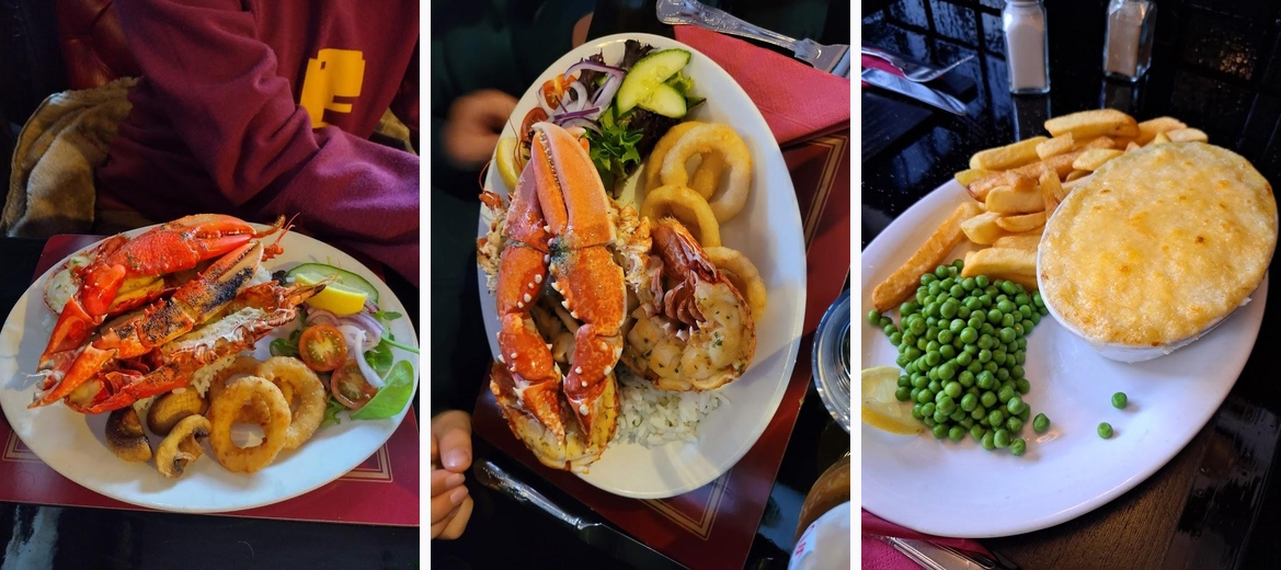 What a little gem! The food is amazing! The menu is full of options, the staff are very friendly and nothing is too much trouble. Situated right on the quay, this is a great place to enjoy your surroundings whilst enjoying some wonderful local food. Would definitely recommend! Photos show: Pate (Starters), Garlic & Butter Prawns with Rice (Children's option), Cod & Chips, Fish Pie, Lobster & Salmon 😋